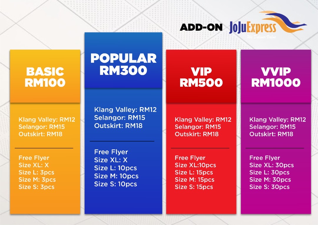 Rate : From RM12.00 - RM18.00/parcel